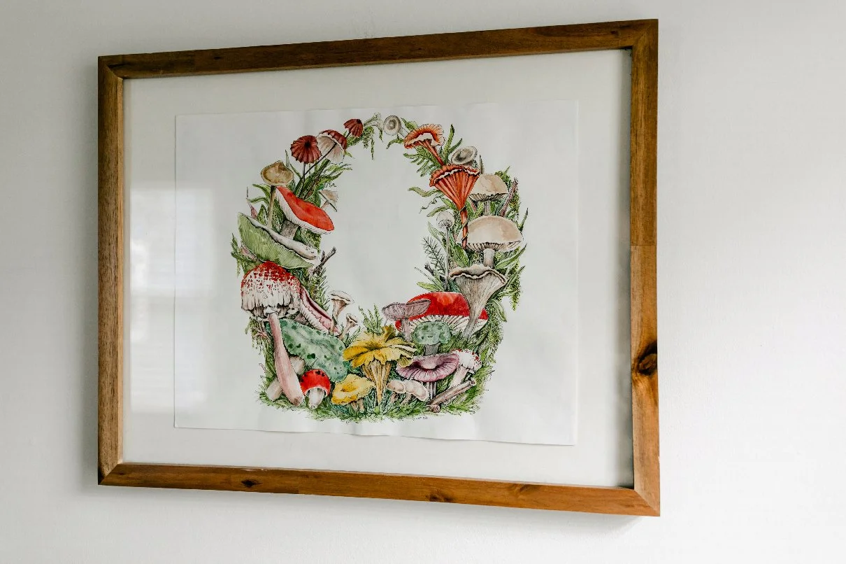 Created to bring joy to all mycophiles, this mushroom wreath has quite a collection. (Can you tell which are inedible?